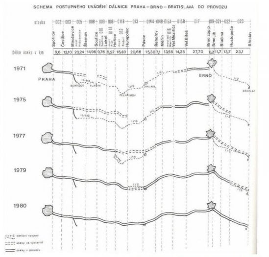 Dálnice se stavěla po jednotlivých úsecích, které se postupně spojovaly
