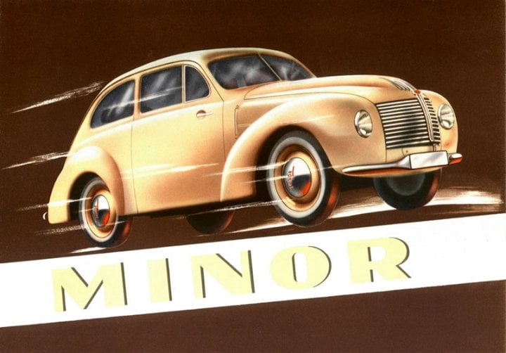 Typový název Minor pochází z předválečné doby: prvním vozem tohoto jména se stala Jawa Minor, skromná, ale oblíbená „šestistovka“ s dvoudobým motorem. Na ní navázal válečný vývoj nového modelu, původně zvaného Jawa Minor II.