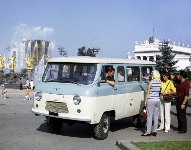 „Buchanka“ se říkalo terénní a nekompromisní dodávce UAZ. Barevná kombinace z propagačního snímku byla v domovské zemi spíše výjimkou…