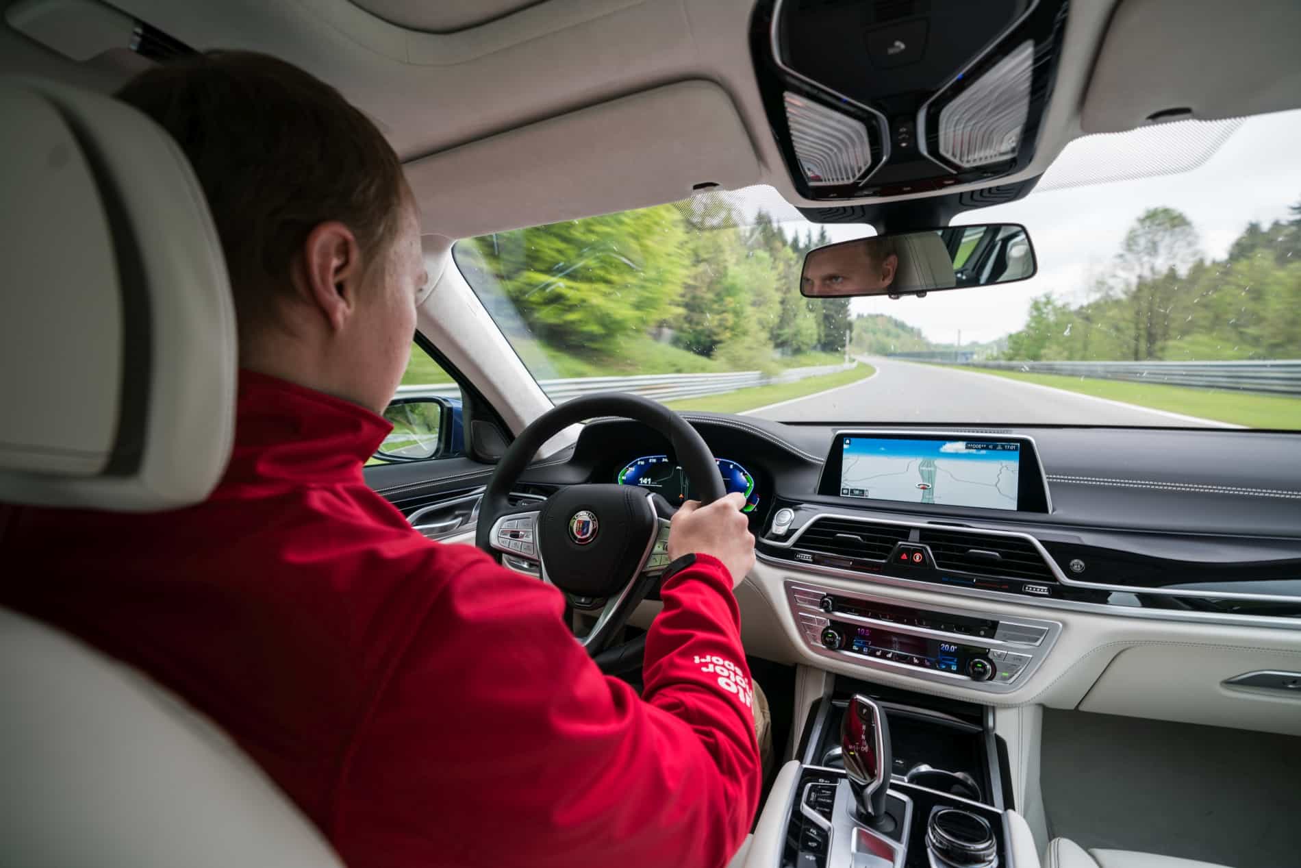 S faceliftem se do luxusního interiéru nastěhoval digitální, samozřejmě typicky modrý přístrojový panel, jízda samotná zůstává na samém vrcholu toho, co lze od limuzíny s 3,2m rozvorem očekávat. Je velmi plavná a příjemná, zároveň však vůz v zatáčkách dlouho drží stopu (zde pomáhá pohon všech kol s preferencí zadní nápravy) a nehrne se přes přední kola ven. Rychlé změny směru samozřejmě nezvládá tak čile jako třeba B4 S, které se představilo v rozlučkové edici 99 (nová gen. bude za rok), raději si počká na narovnání trati. Potom vypustí svých 800 Nm, na které nově dosáhne už při 2000/min, a digitální ručička letí vzhůru. Ve zkreslování rychlosti je B7 přeborník: 240 km/h se řidiči jeví jako příjemně uvolněné cestovní tempo.