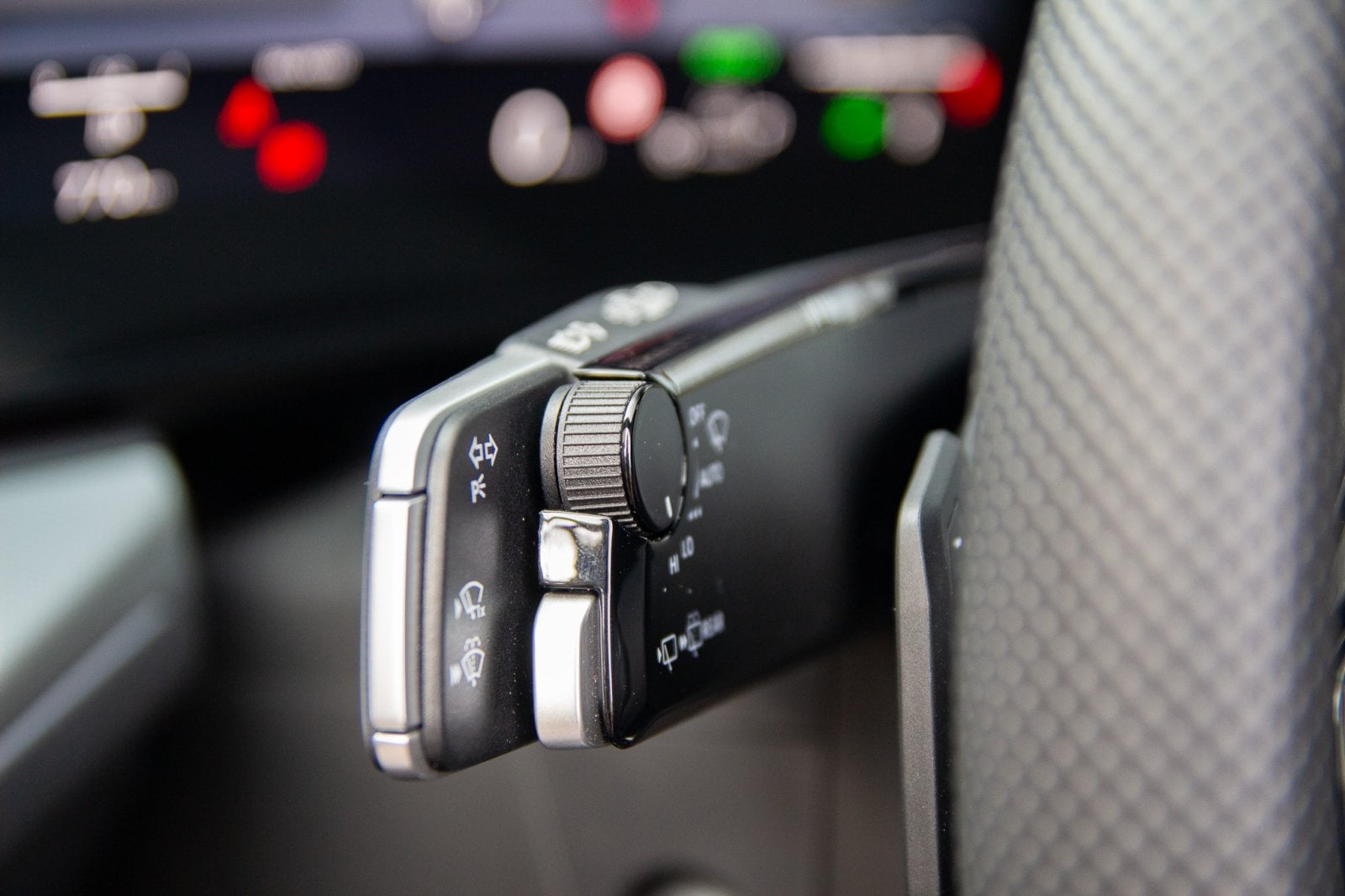 Audi do Q3 umístilo své nové ztvárnění páček pod volantem. Vypadá to hezky na pohled, ale k dokonalosti mu kus chybí. Základem je pevná část, na které se pohybují jen krajní části. Pravá páčka je jednoduchá, je zde volič směru jízdy směrem nahoru a dolů. Ale ta levá musí sdružit poměrně dost funkcí, kromě blinkrů také stěrače a světla.