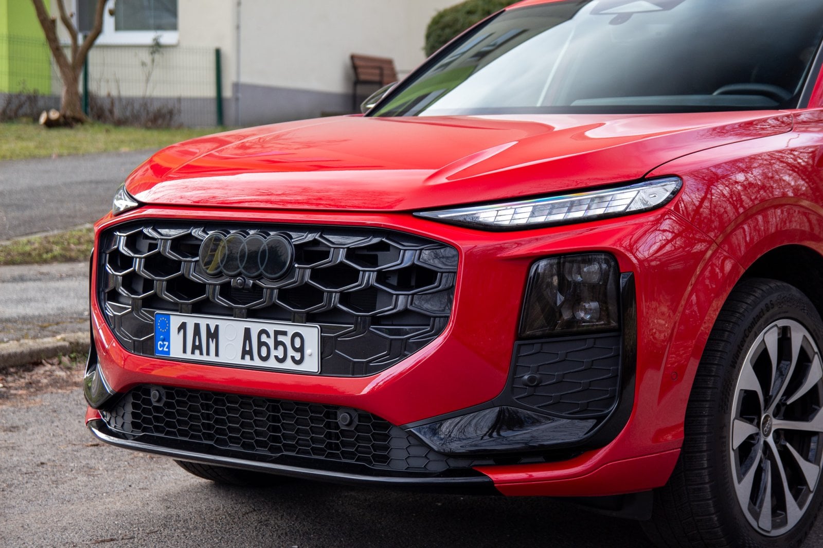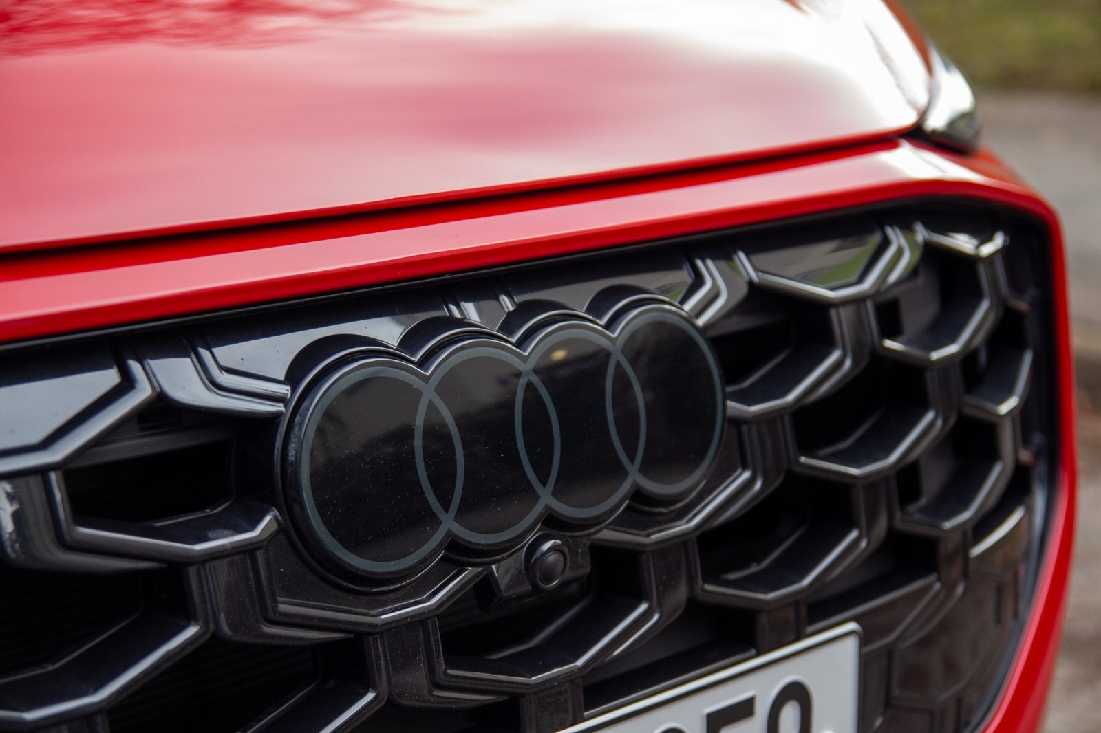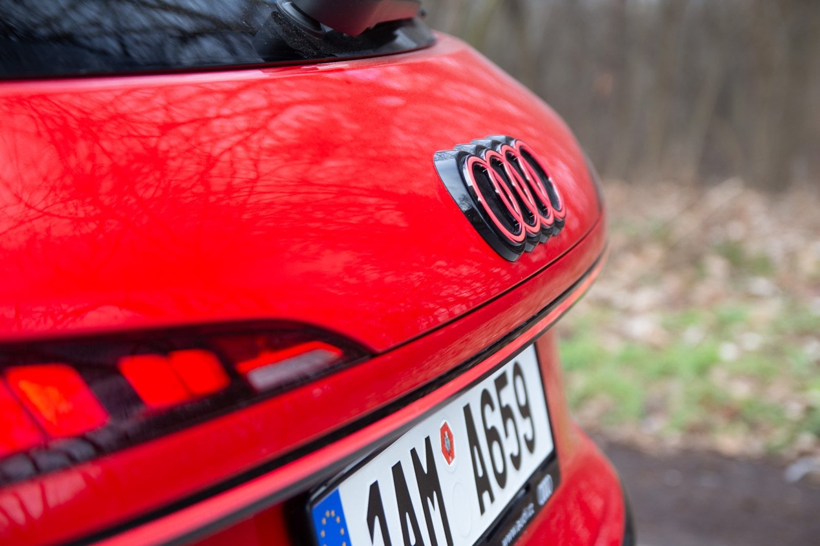 Stojí před námi nejnovější recept na ingolstadtskou eleganci. Přimhouřená světla denního svícení a chytře schovaná hlavní světla s LED Matrix technologií, žádný chrom a hodně černé obalené v sytě červené barvě. Vzadu úzké světlomety a dnes už povinná červená linka mezi nimi a samozřejmě osvětlené logo výrobce.