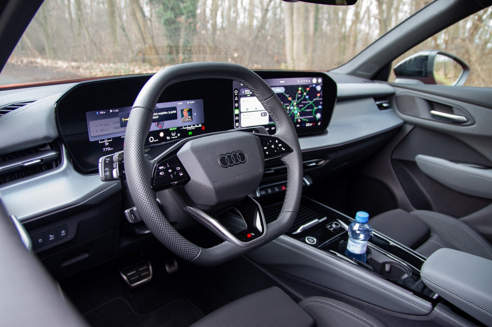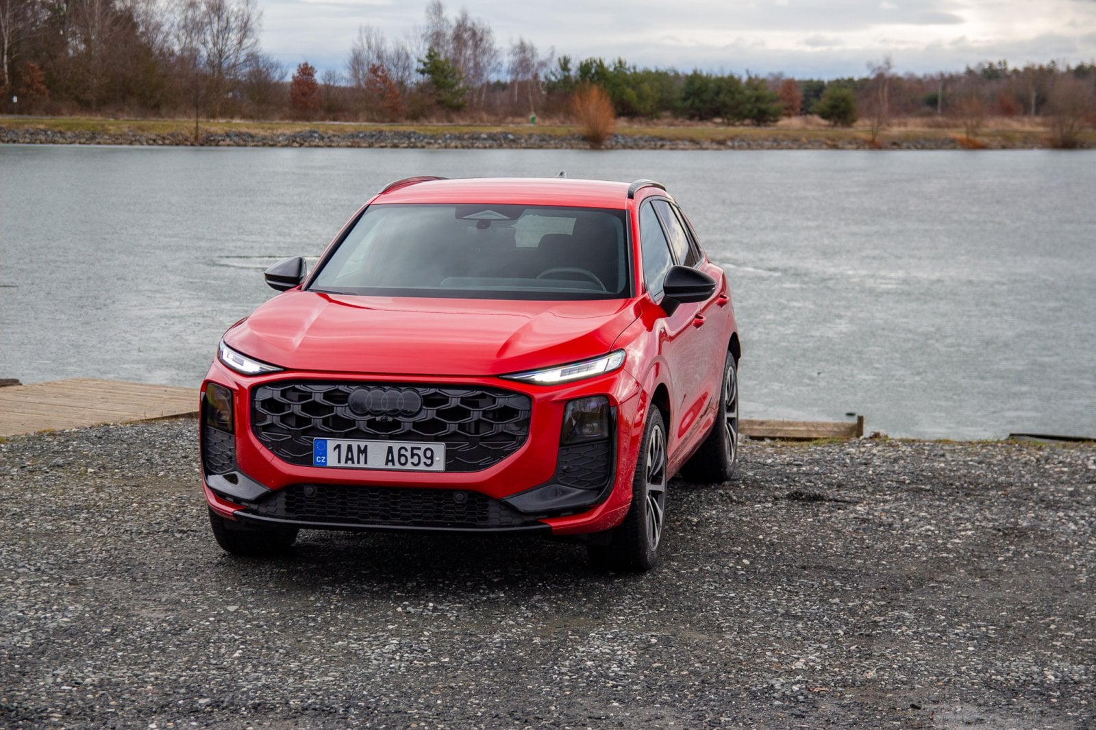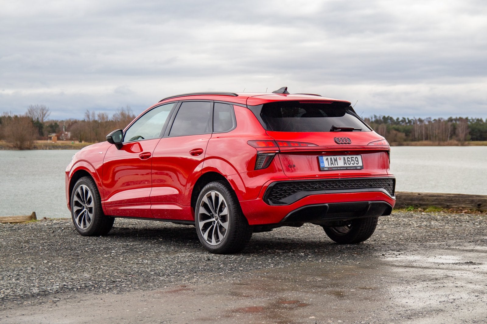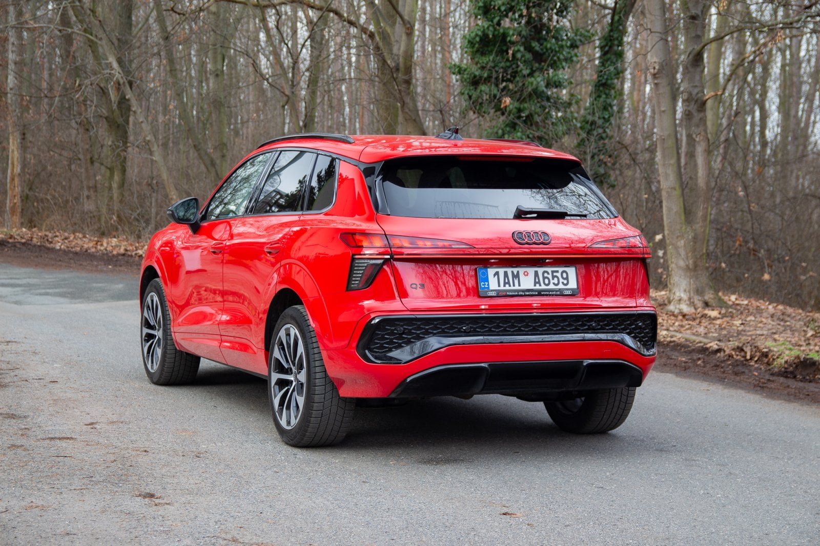 Na devatenáctipalcových pneumatikách je auto přiměřeně tuhé, je to tak maximální rozměr, který bych doporučil, aby nebylo příliš tvrdé. Q3 stojí na stejné platformě MQB Evo jako třeba Tiguan a musím říct, že svezení je opravdu na výši. Žádné rány, žádné velké otřesy, jen krásné předvídatelné chování podvozku, který snese i hrubší zacházení. Menší kola budou možná ještě lepší volbou, ale ta obvykle dost pokazí vzhled. Uvnitř je Q3 nádherně tichá i nad povolenými dálničními rychlostmi.