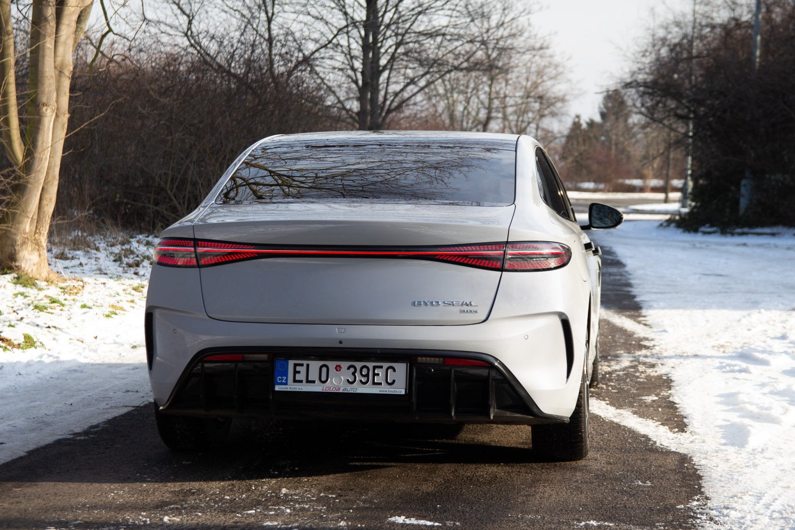 Celý týden zápůjčky byly silnice pokryty sněhem, a tak spíše než maximální výkon přišel vhod pohon všech kol. Seal stále zapojuje obě nápravy, nečeká až na prokluz jedné z nich, jako to dělají třeba vozy koncernu VW. To dává poměrně velkou jistotu, ale přece jen při rozjezdech na zasněženém kopci si Seal občas prohrábnul a trakci hledal tradičním přibrzďováním prokluzujících kol. Tak, jak to známe ze spalovacích aut i jiných elektromobilů.