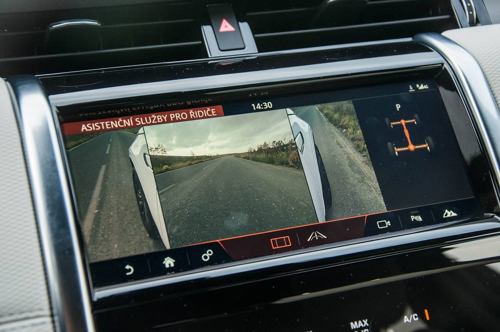 Třeba pokud bude vůz plně naložen nebo pokud budou sedět vzadu tři větší cestující (nebo dokonce ještě další dva ve třetí řadě). Pak z pozice řidiče dozadu nevidíte. S touto kamerou je výhled sice jiný, ale je. Za deště se navíc kamera vůbec nešpiní, takže nemusíte řešit zadní stěrač, a v noci jsou auta jedoucí za vámi vidět lépe. Land Rover pak přidá i spoustu asistenčních systémů. Jen je škoda, že nefungují tak spolehlivě jako třeba u Audi. Velmi užitečné jsou i adaptivní diodové světlomety.