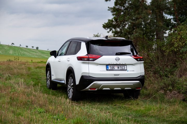 Ve městě se nejvíce projeví výhody tohoto uspořádání, protože X-Trail je opravdu úsporný. Stále však považuji za největší přínos uživatelskou přívětivost. Absence převodovky znamená, že se po sešlápnutí plynu na nic nečeká a X-Trail hned vyrazí. Energii do 1,73 kWh velké baterie doplňuje benzinový tříválec vybavený turbem a unikátním technickým řešením, které umožňuje měnit kompresní poměr spalovacího prostoru. Jen když jej elektromotor výrazně zatíží výrobou proudu, ozývá se z pod kapoty sympatické a vzdálené bručení.