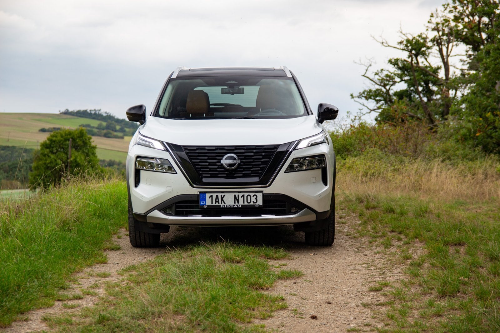 X-Trail na první pohled vypadá mohutně a velká maska s horizontálně dělenými světly tuto mohutnost ještě podtrhuje. Tento 4 680 mm dlouhý vůz vyčnívá ze současné produkce japonské automobilky nejen rozměry, ale i relativně konzervativními tvary. Oproti modelům Juke, Qashqai nebo Micra je největším výstřelkem právě dělení hlavních světel. Z boku i zezadu je X-Trail vlastně hodně konzervativní. Vzadu dokonce není ani nijak propracovaná světelná technika. Nenajdete tu žádné ostré křivky a lomy jako u Qashqaie.