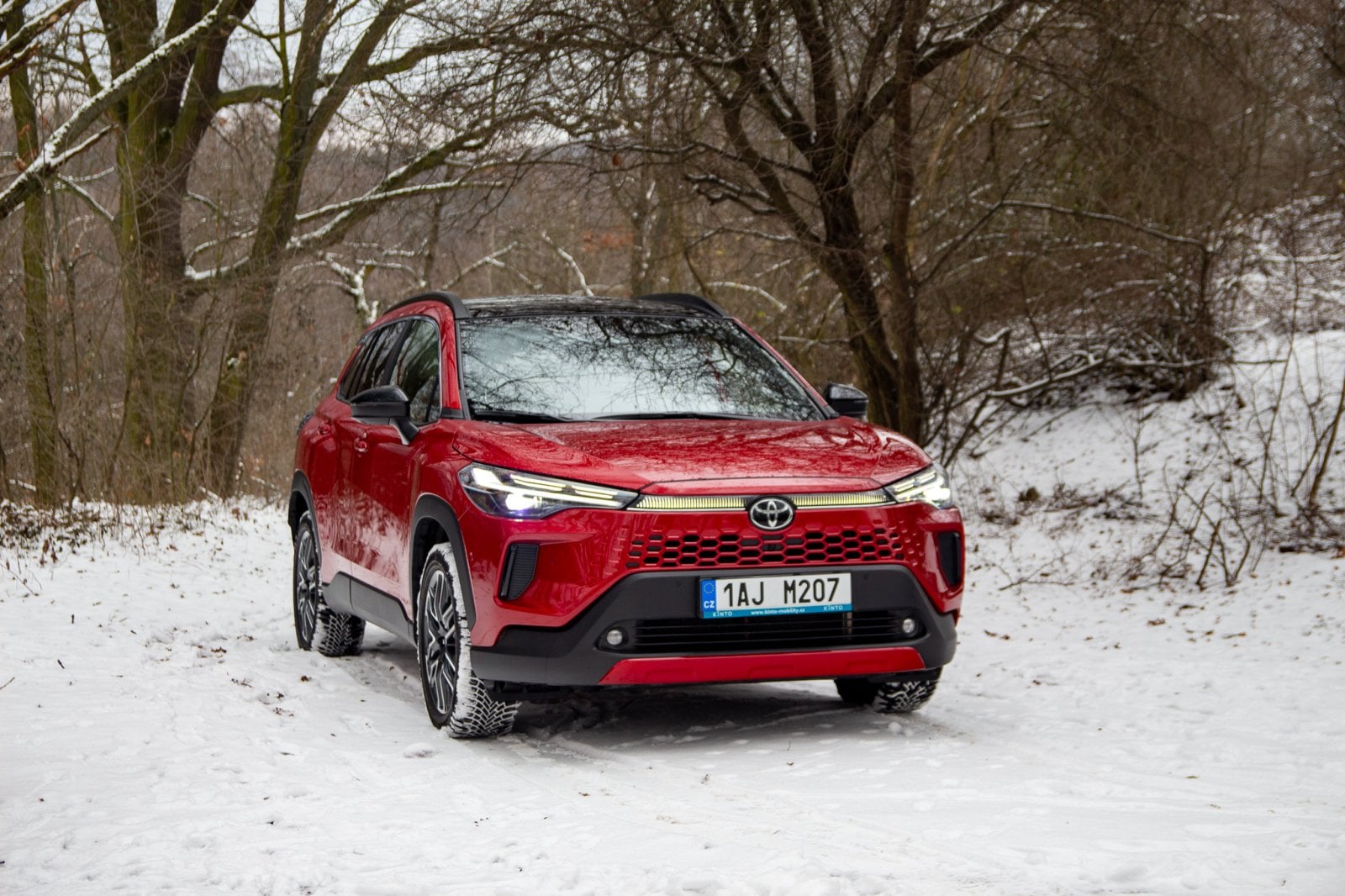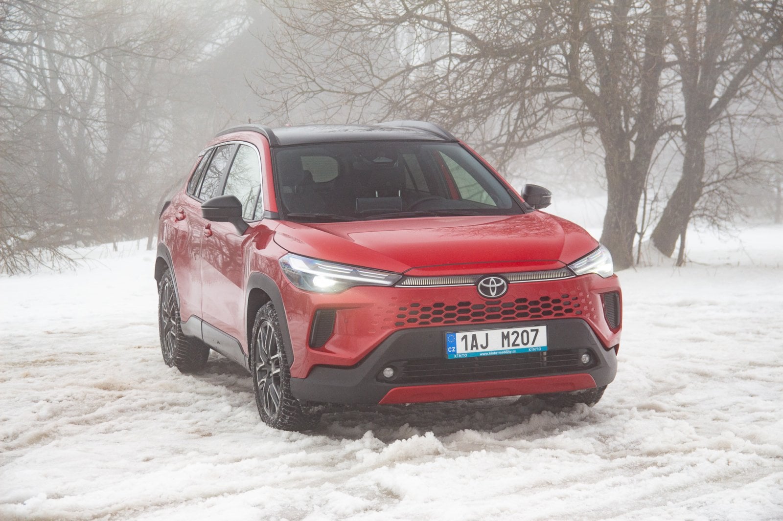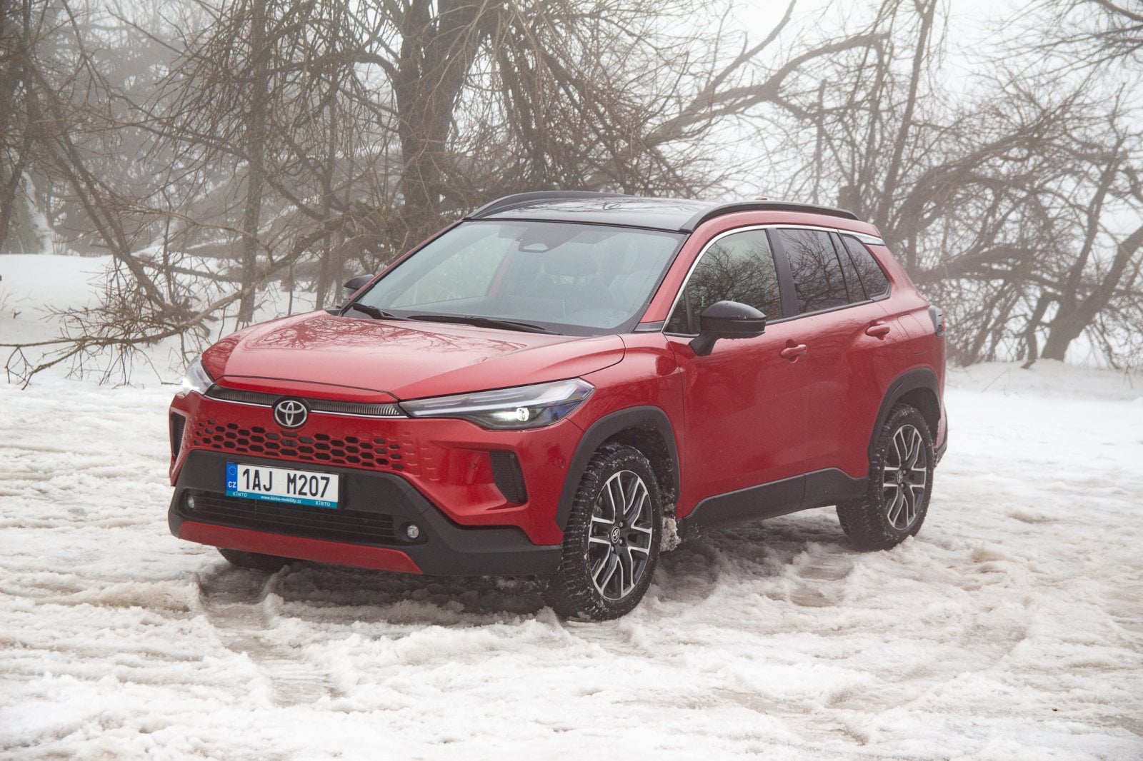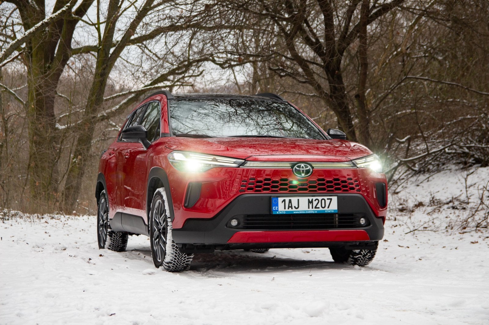 V běžných podmínkách se zadní náprava připojí při rozjezdu, ale během chvíle se uloží ke spánku. Jak je vidět na fotkách, Corollu Cross jsme zkoušeli ve sněhu a musím smeknout klobouk před tím, jak v režimu Snow Extra celý pohon funguje. Jemnost regulace výkonu je obdivuhodná. Corolla Cross se rozjede, jako by se nechumelilo, a klidně i v čistě elektrickém režimu. Ticho, kdy pod koly jen praská sníh a auto se nekomplikovaně dává do pohybu, je fantastické.