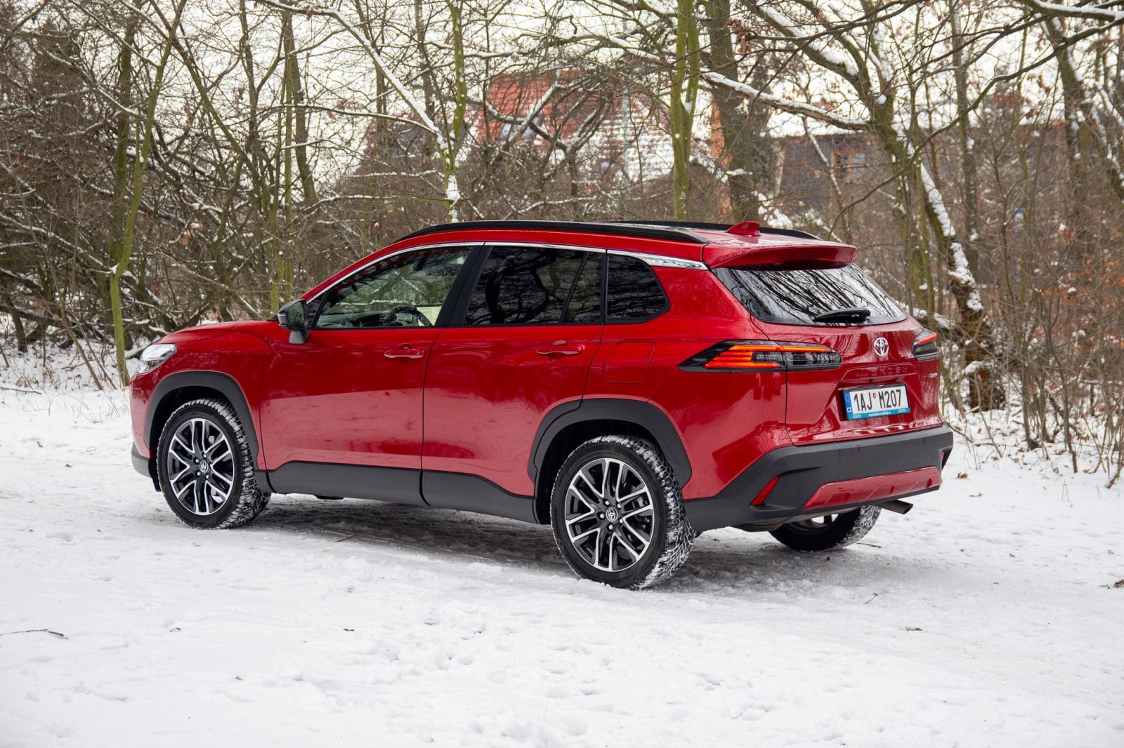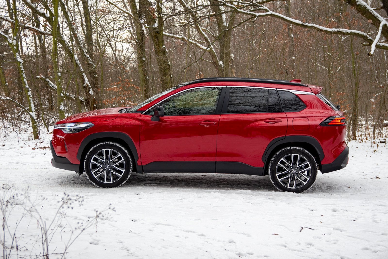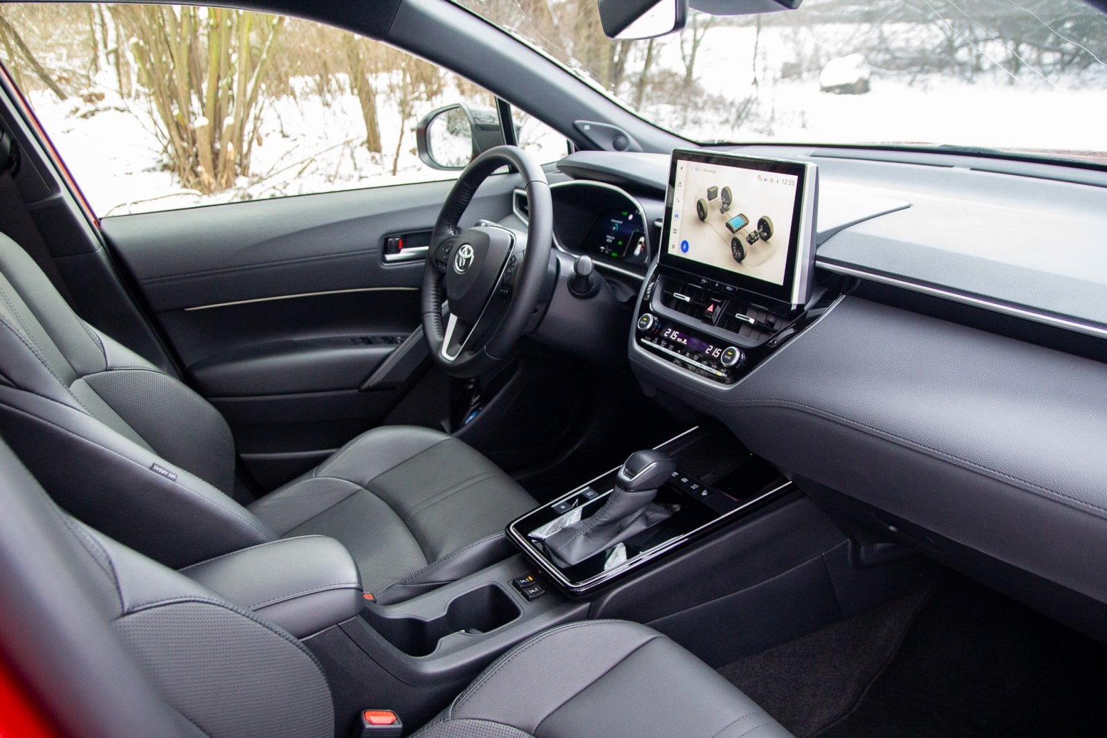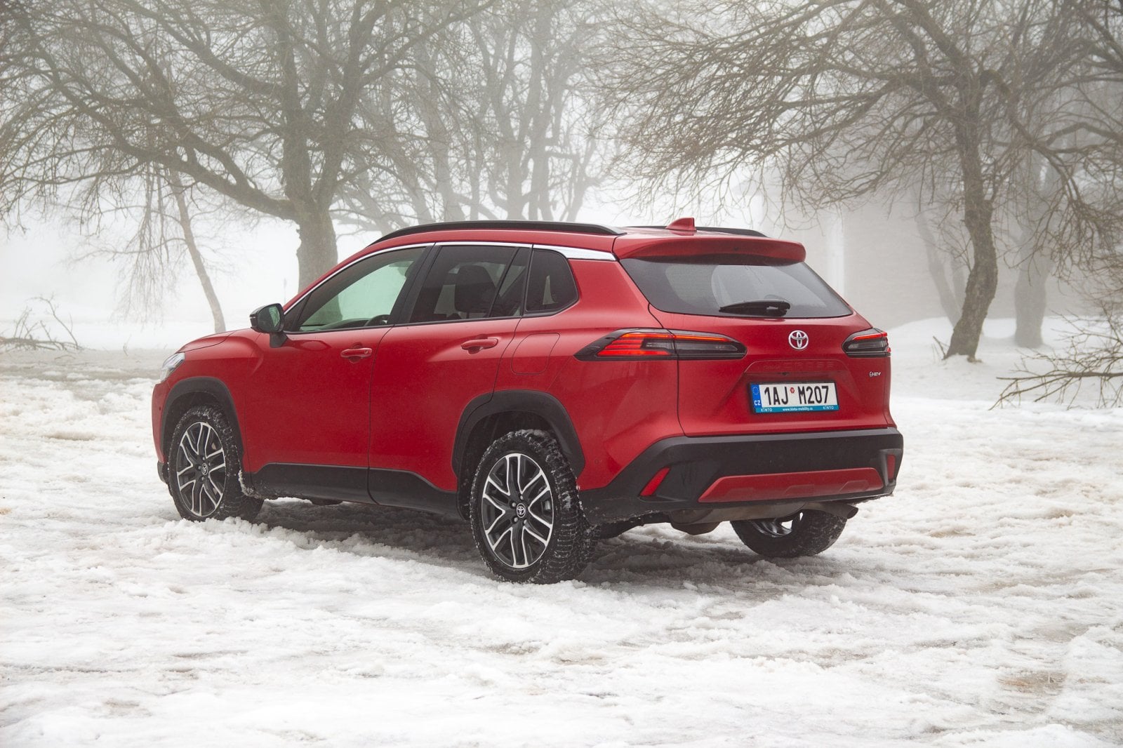 V běžných podmínkách se zadní náprava připojí při rozjezdu, ale během chvíle se uloží ke spánku. Jak je vidět na fotkách, Corollu Cross jsme zkoušeli ve sněhu a musím smeknout klobouk před tím, jak v režimu Snow Extra celý pohon funguje. Jemnost regulace výkonu je obdivuhodná. Corolla Cross se rozjede, jako by se nechumelilo, a klidně i v čistě elektrickém režimu. Ticho, kdy pod koly jen praská sníh a auto se nekomplikovaně dává do pohybu, je fantastické.
