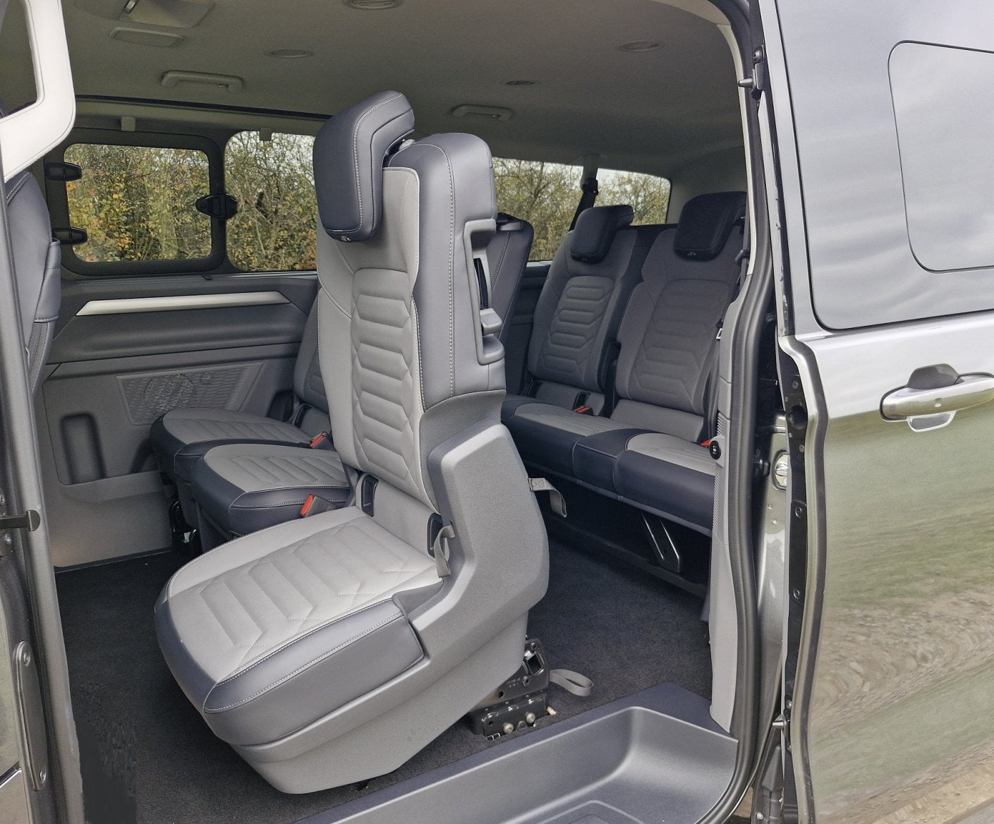 S volbou modelové řady Caravelle dostanete možnost převézt až 9 cestujících, avšak já měl k dispozici variantu pro osm cestujících (i s řidičem). Cením rozměrná a celkem pohodlná sedadla, která mohou mít vpředu za příplatek elektrické ovládání. Druhá řada je částečně sklopná, ale nelze ji posouvat či otočit proti směru jízdy. To je zásadní rozdíl oproti Multivanu, který tohle umí. Třetí řada sedadel je taktéž sklopná a dá se vyjmout, ačkoliv váha samotné lavice dá zabrat i tomu, kdo tráví hodně času v posilovně.