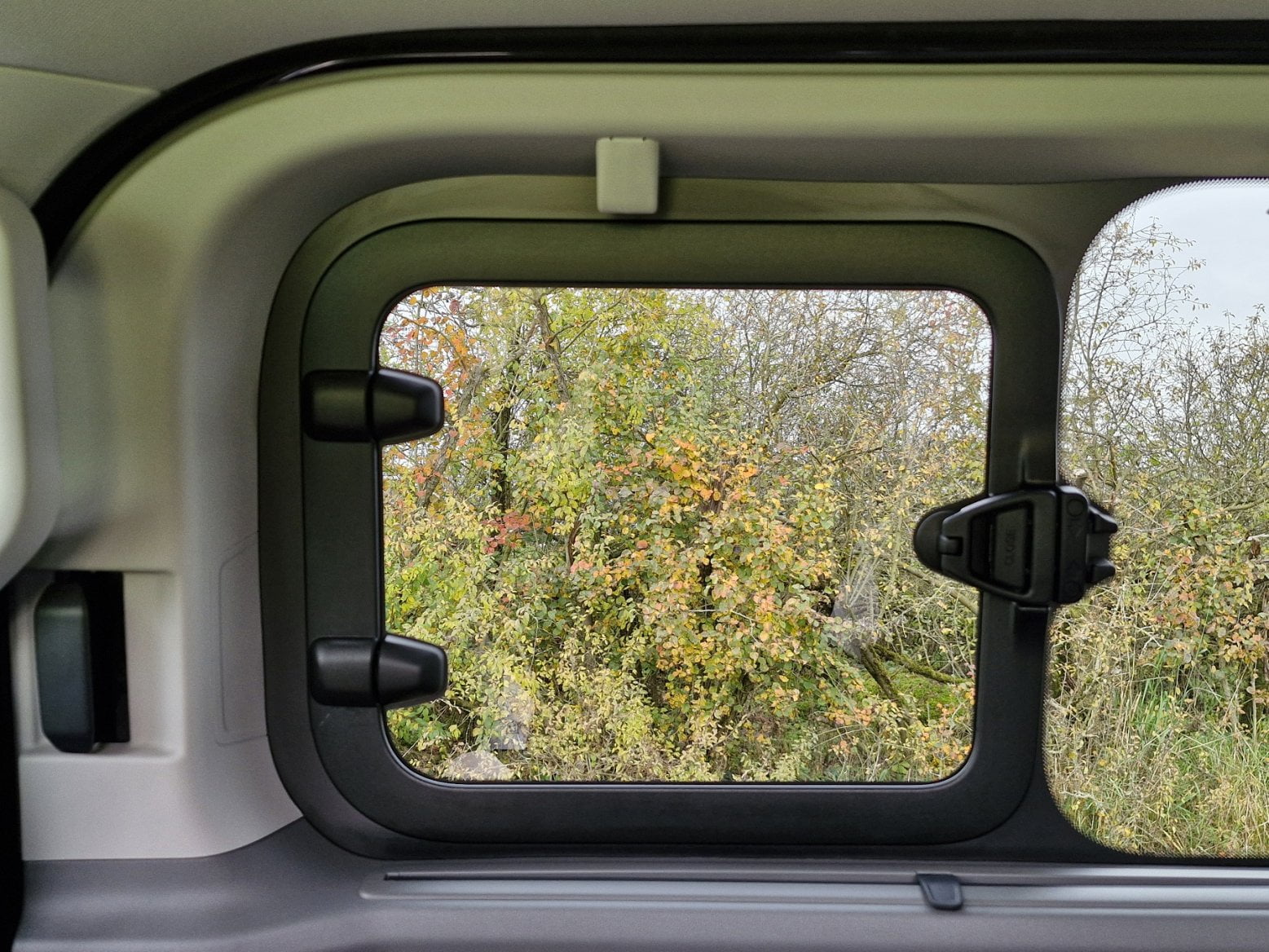 Líbí se mi, že každá řada má své vlastní výdechy klimatizace, přičemž teplota, směr a rychlost ofuku pro druhou a třetí řadu se ovládá na samostatném stropním modulu hned za řidičem. Pro větší soukromí jsou v zatmavených bočních oknech u druhé řady instalovány manuálně ovládané stínící rolety, které dokáží ve voze vykouzlit nečekanou tmu, a to i za slunného počasí. Tohle je osobní mikrobus, který ale má své jisté kompromisy. Sedadla obou zbylých řad lze nastavit jen po stránce sklonu opěradla a loketní opěrky zde určitě nečekejte.