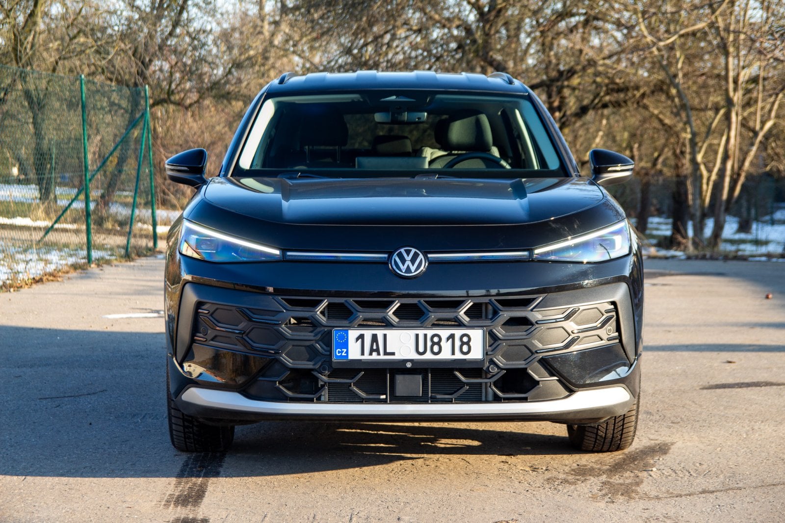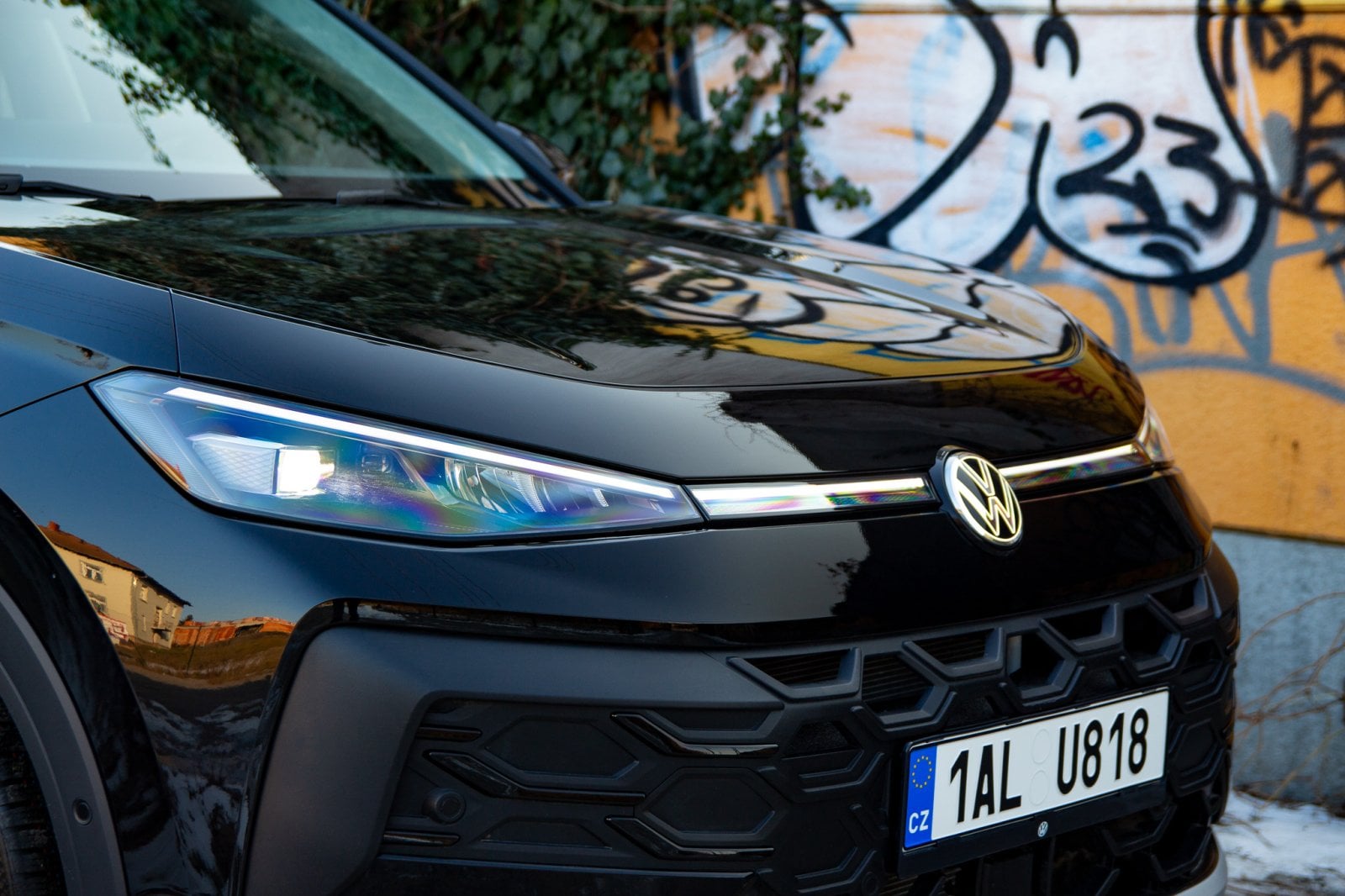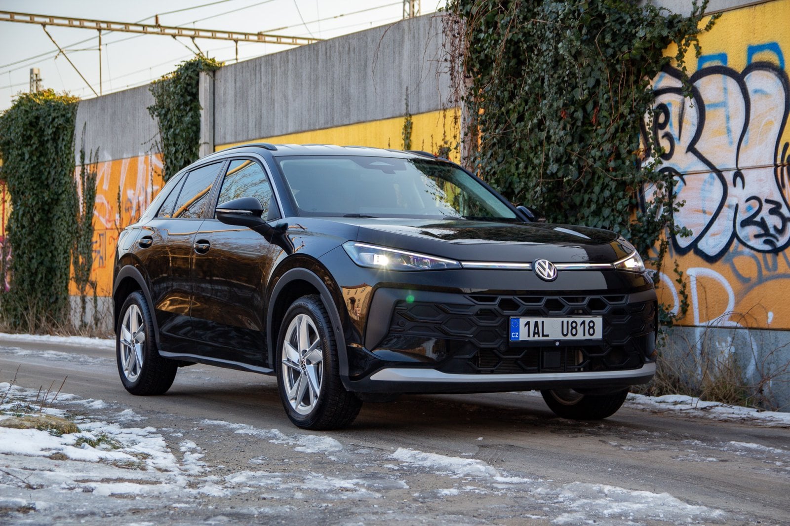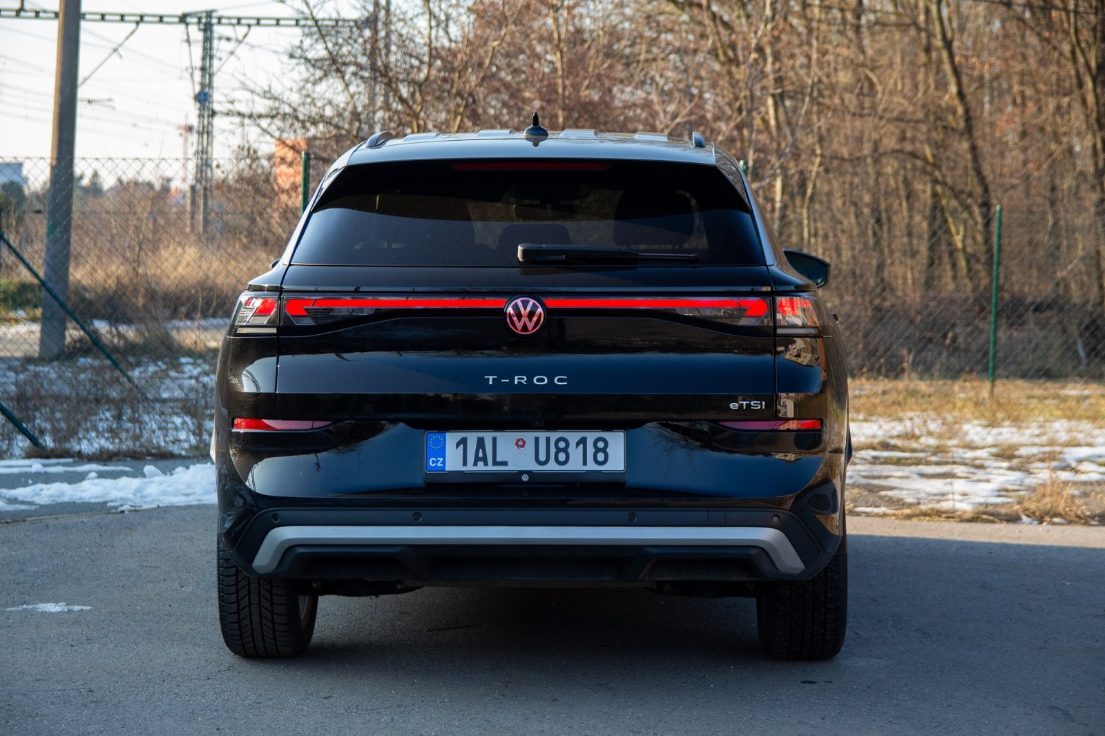 T-Roc sleduje designový směr, který jsme loni viděli u nového Tayronu. Menší světlomety v mohutné zakulacené přídi a relativně malá prosklená plocha vůči bokům auta mají dodávat dynamický vzhled. Promo snímky varianty R-Line v zářivě žluté barvě s velkými dvacetipalcovými koly opravdu působí velmi dobře. Námi testovaná verze v černé barvě s menšími koly však vyznívá o poznání hůře. Nerad to říkám, ale testovaný T-Roc působí poměrně nudně. Té černé barvy až příliš, velké plochy sice částečně rozbíjí osvětlená linka mezi světlomety, ale nejsem si jistý, zda to stačí.